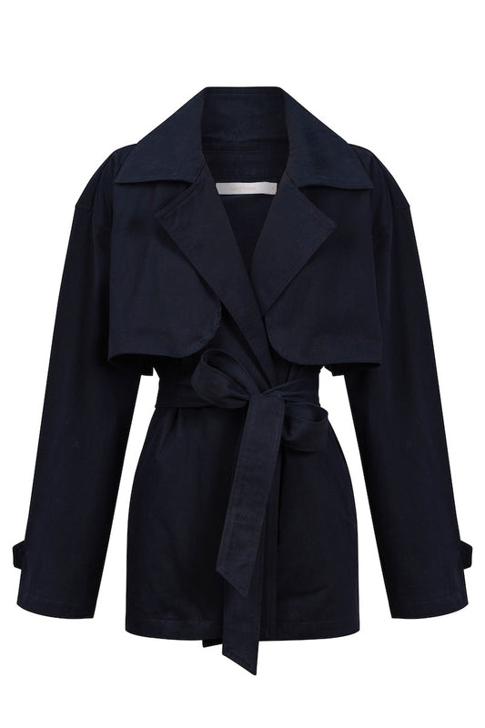Farida Cropped Trench, Navy