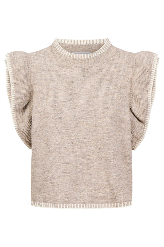 Athena Frill Knit Top, Stone