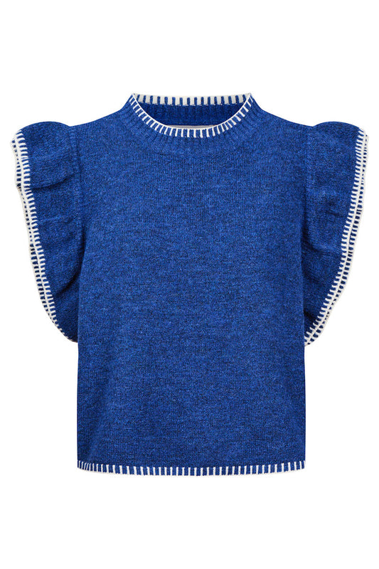 Athena Frill Knit Top, Cobalt
