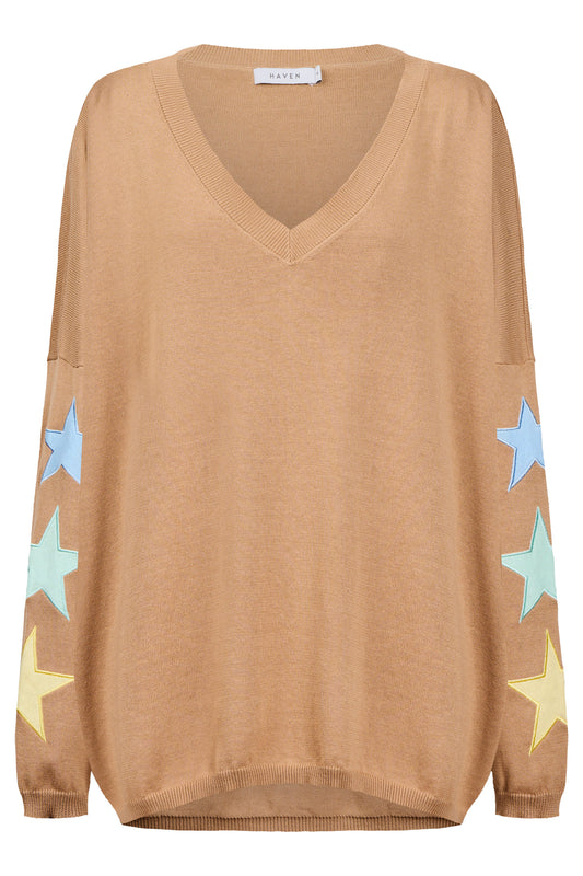 Vermont Star V Neck Jumper, Tan