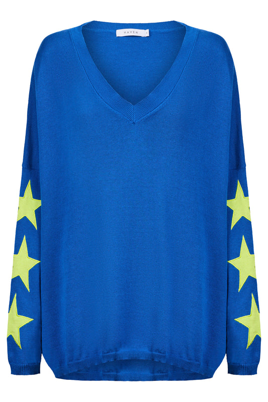 Vermont Star V Neck Jumper, Cobalt