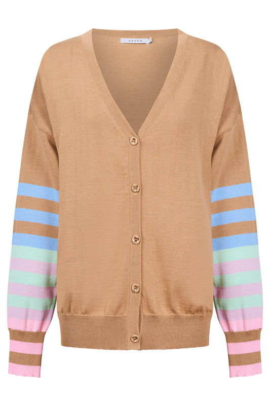Vermont Stripe Cardigan, Tan
