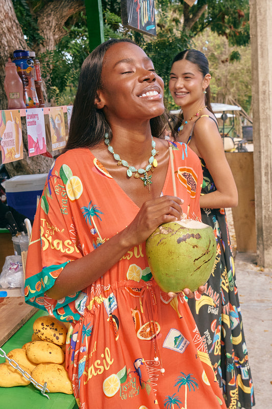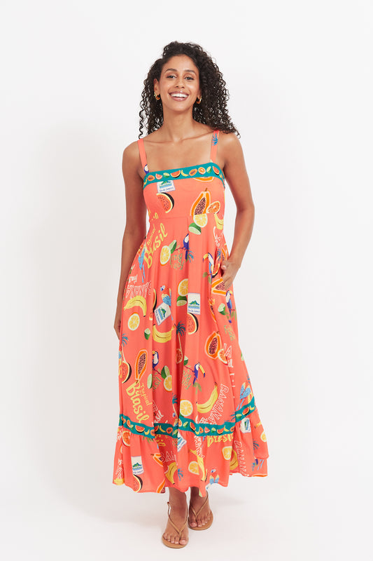 Cabana V-Neck Maxi, Coral