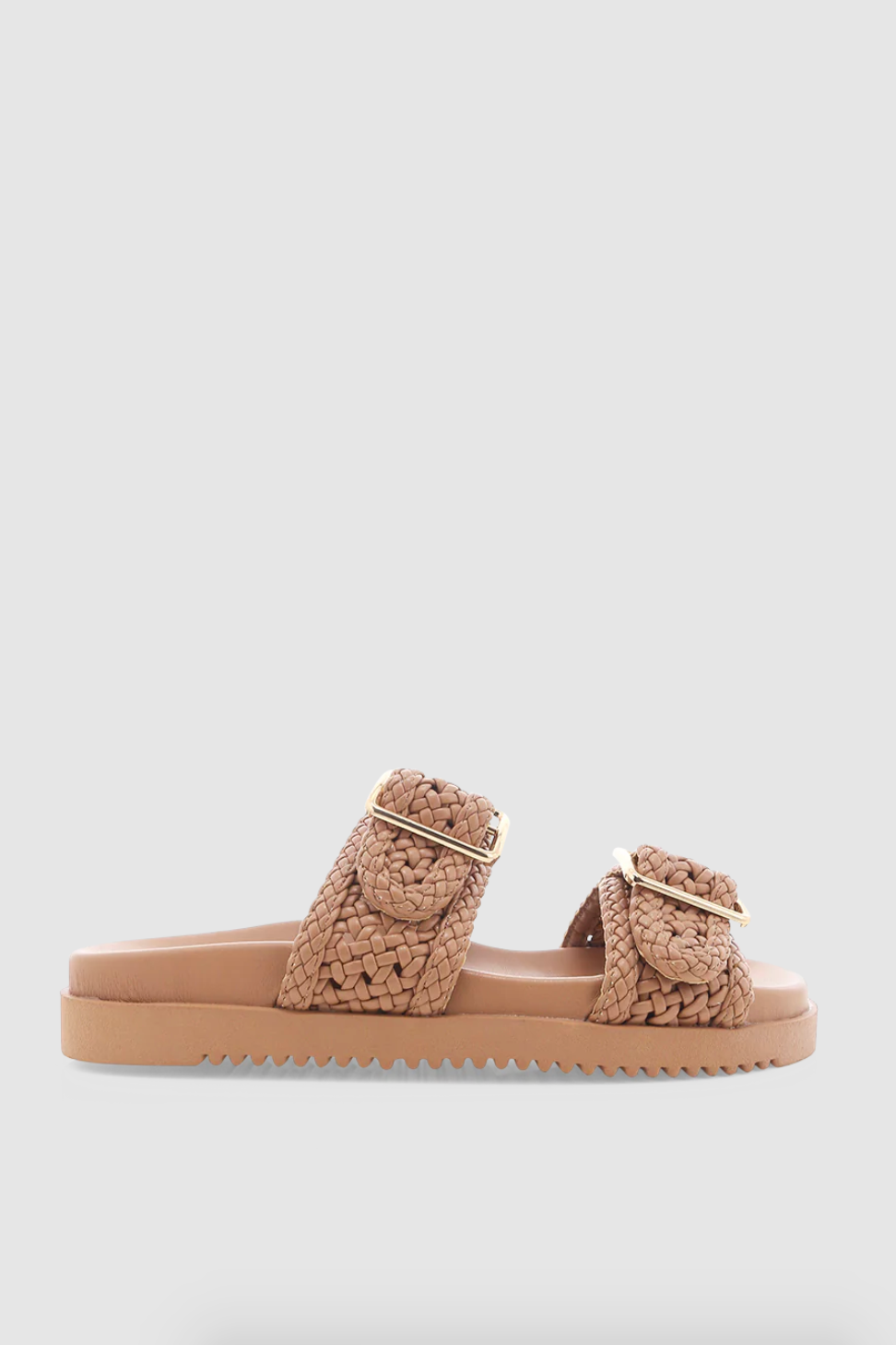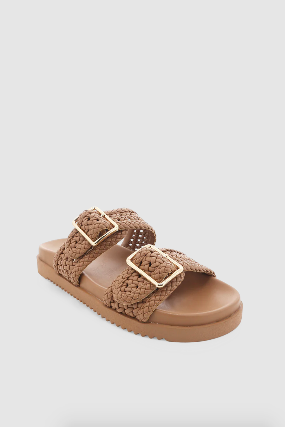 - two adjustable gold buckles across upper