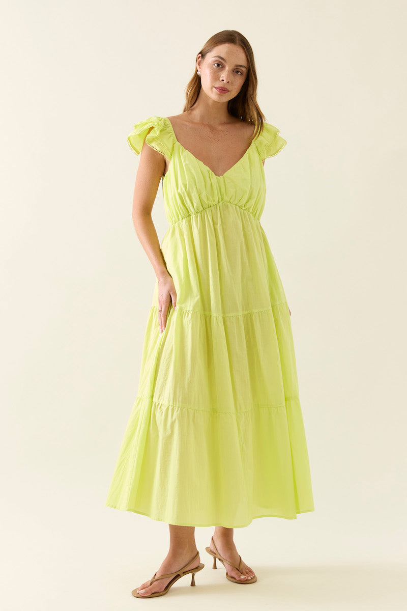 Crafted in soft cotton voile, the Aurora Frill Tank Dress features delicate double-layer frill sleeves, a gathered bust and tiered midi-length hem. Fully lined with side pockets for ease.