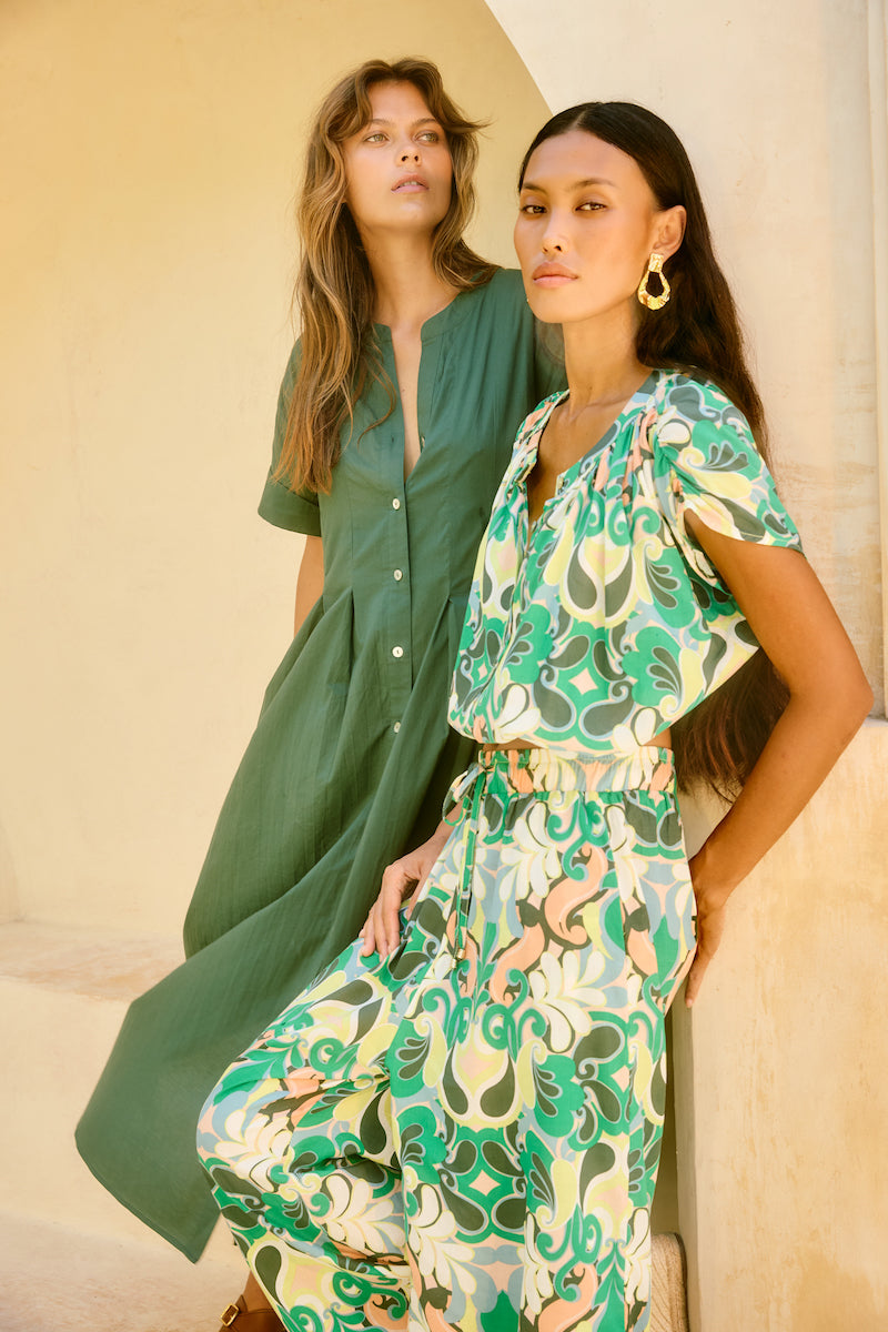 A versatile piece with considered detailing, the Aurora Reversible Crop Top is crafted from cotton voile and features a gathered elastic waist, shell buttons and a drop armhole. Wear it buttoned to the front or back for two looks in one.