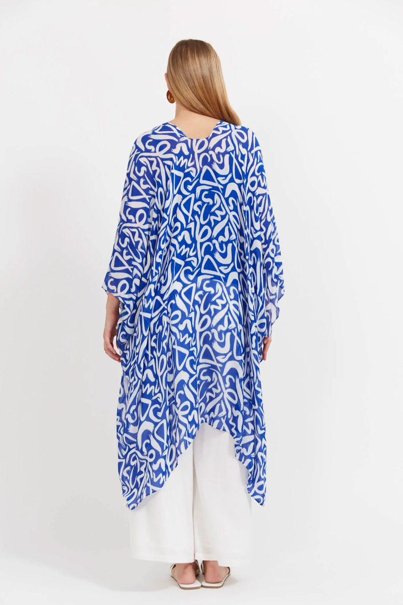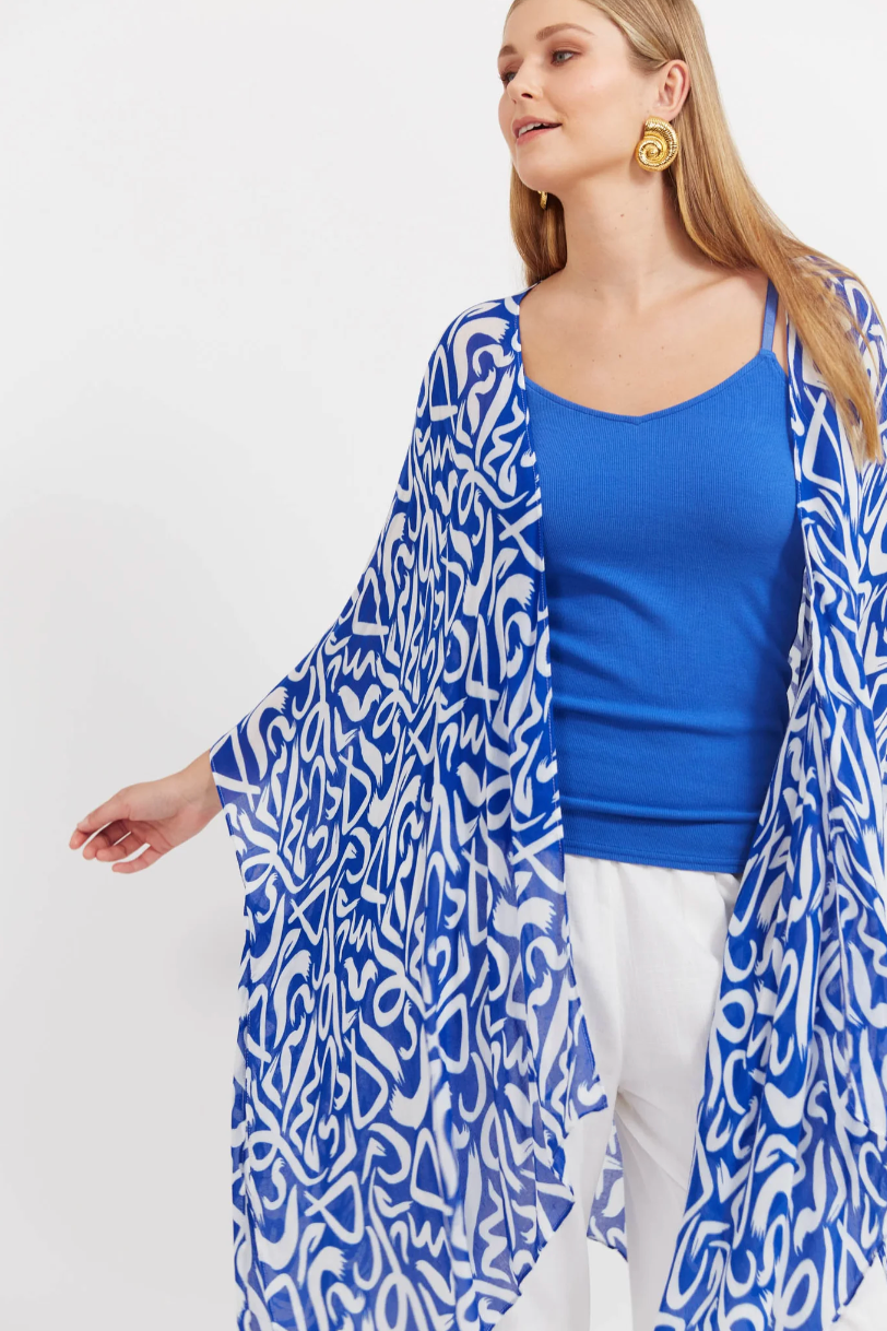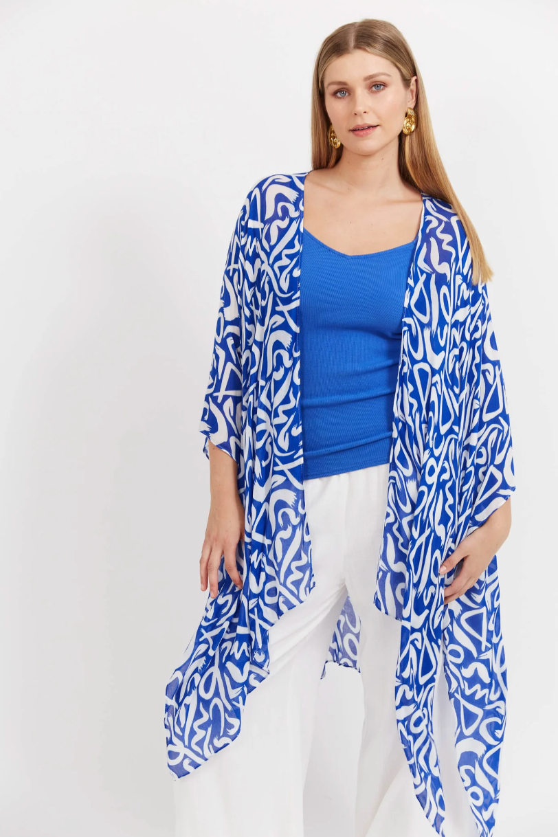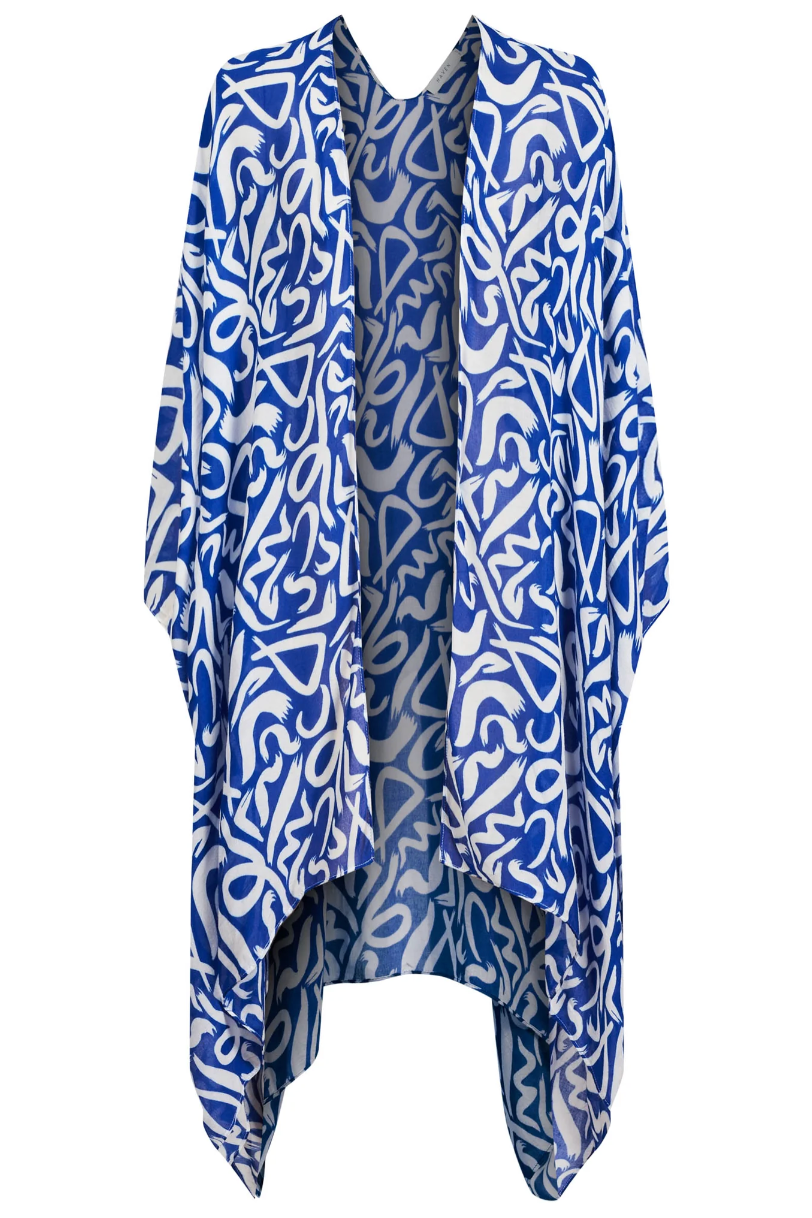 A light layer with a bold touch. The Bahama Cape is your go-to for easy sun coverage - whether thrown over swimwear or styled with everyday pieces. Featuring an open-front design, 3/4 length sleeves, side vents, and a flowing handkerchief hem, it adds movement without the bulk. Crafted in a semi-sheer, summer-ready print, it pairs perfectly with the matching Bahama Swimsuits for a coordinated beach-to-lunch look.