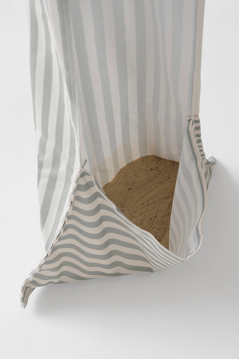 - Includes x1 pole, x4 fabric legs with sand feet for stability, and x4 storage pockets with eyelets for sand drainage.