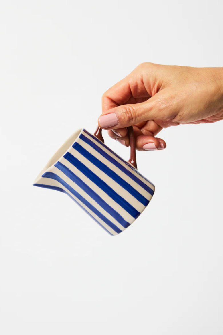 The Bloomie Milk Jug is hand-painted with vertical stripes with an accent handle. Perfect for brunch spreads, hot drinks or tabletop styling, it's a little pourer with a lot of personality.