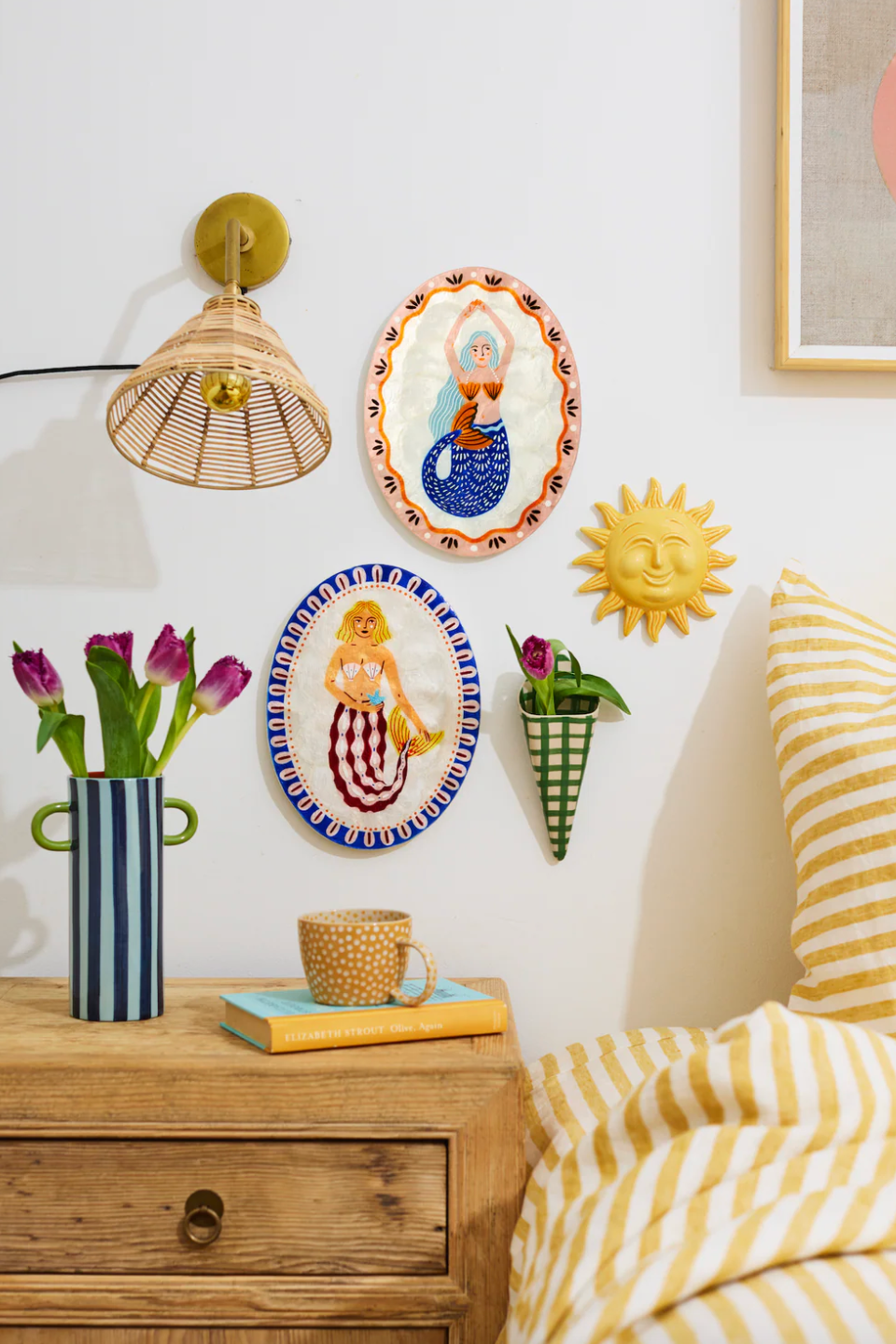 Radiating joy in butter yellow, this smiling sun transforms walls with its cheerful presence. Hand-cast from fine bone china and glazed to a high shine that captures light beautifully, this Jones & Co wall accent brings playful sophistication to hallways, children's rooms, or any space needing a touch of sunshine. Each Australian-designed piece carries the subtle variations that make handmade objects truly special.