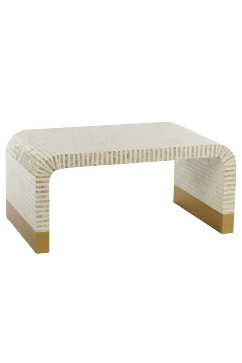 Add a touch of sophistication to your living room with the Elegant Shell Inlay Coffee Table. Its distinctive design and superior craftsmanship make it a perfect centerpiece for any stylish home.