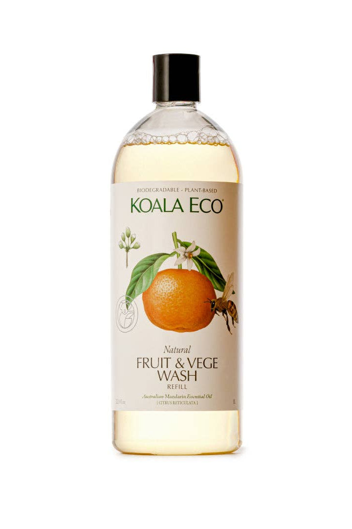 Our Mandarin Fruit & Vegetable Wash removes residual pesticides, oils, waxes and agricultural chemicals from fruit and vegetables, and leaves no aftertaste. Even organically grown produce is vulnerable to the effects of drift spray, human handling, mould spores, and dirt. A simple rinse may not suffice. Koala Eco’s biodegradable and eco-friendly plant-based formula cleans produce without the need for anything toxic. Taste the difference when you return your fruit and vegetables to the way nature intended.