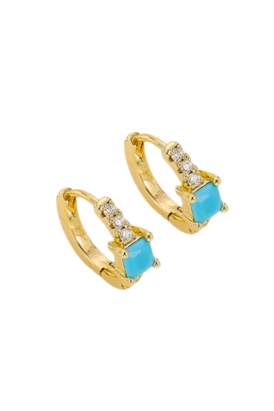Small huggie earring featuring turquoise stones