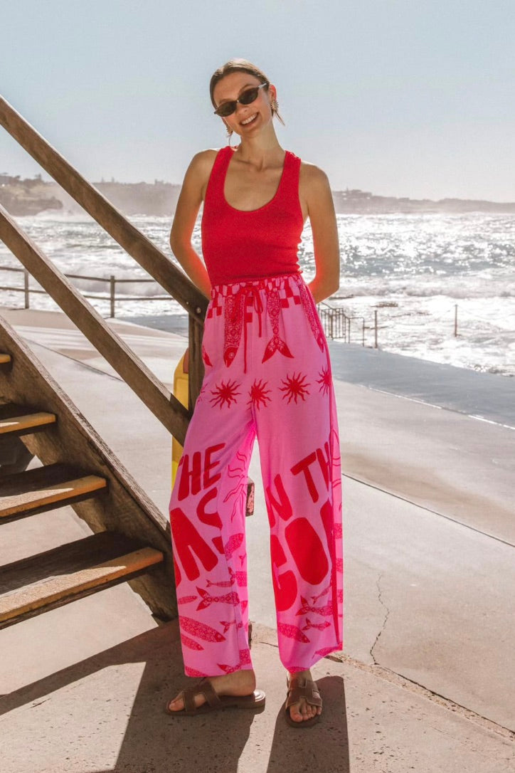 Dive into summer with our vibrant On the Coast collection — a celebration of sunshine, sea breezes, and carefree coastal style. Splashed in bold hot pink and vivid red, each piece features playful fish motifs, retro checkerboard accents, and the statement slogan “ON THE COAST” for a joyful, seaside vibe.