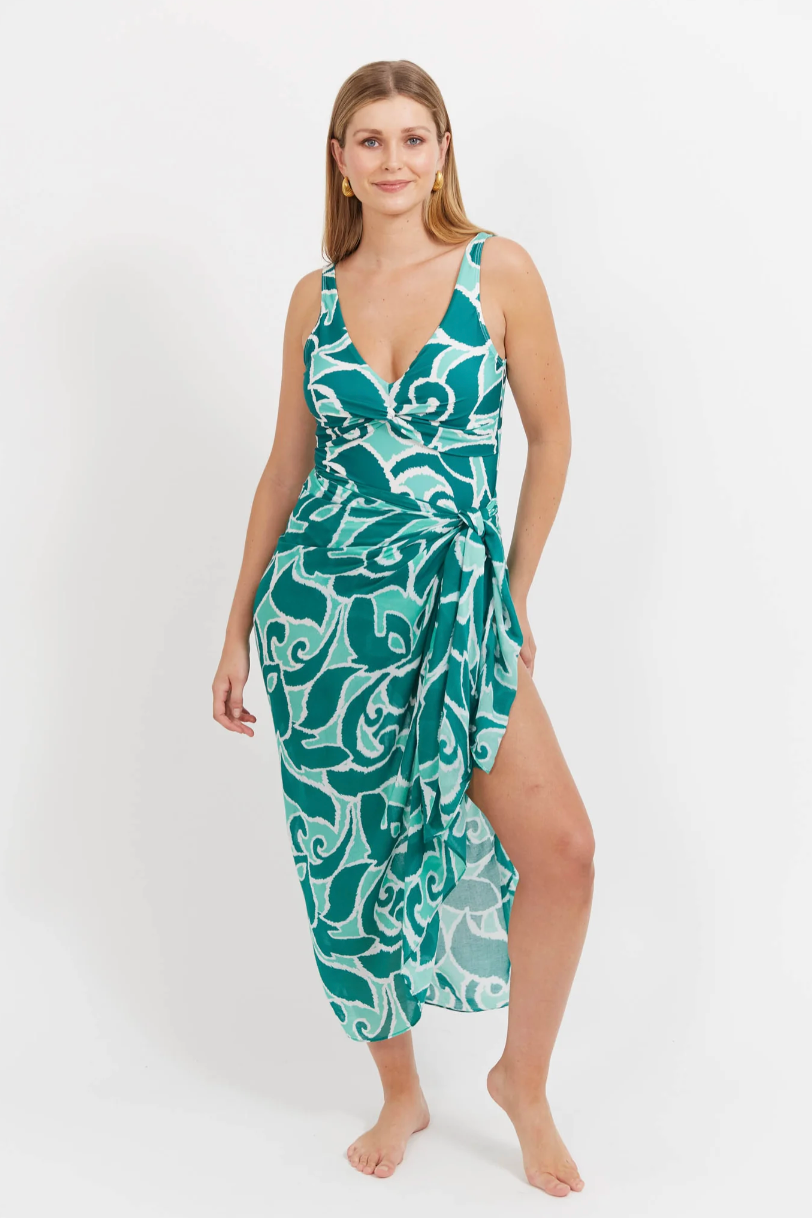 Designed in our modern Palms print, this pairs seamlessly with our Santos Twist One Piece Swimsuit for poolside perfection.
