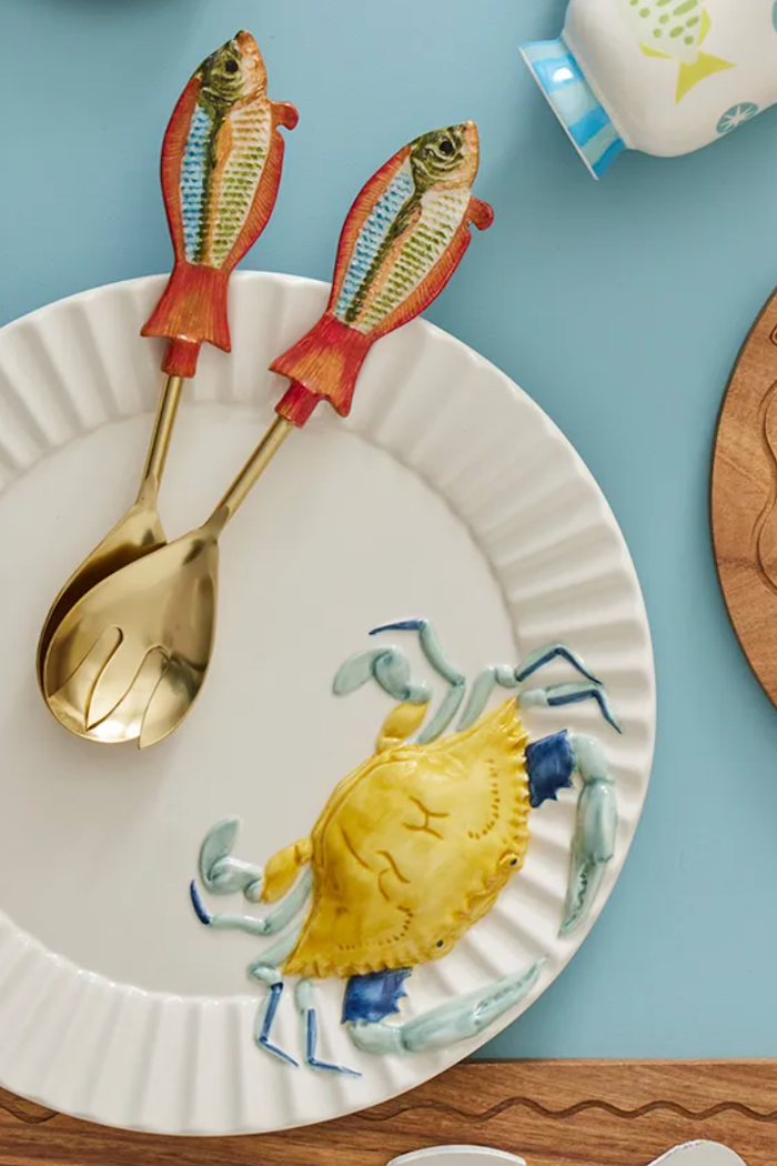Summer entertaining essential: this ceramic platter features a gorgeous blue and yellow crab motif and is perfect for serving dishes like pasta, salads or seafood.