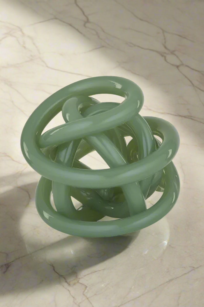 Add interest to your styling with these twisted green glass sculptures. Each one is unique, so no two are the same.