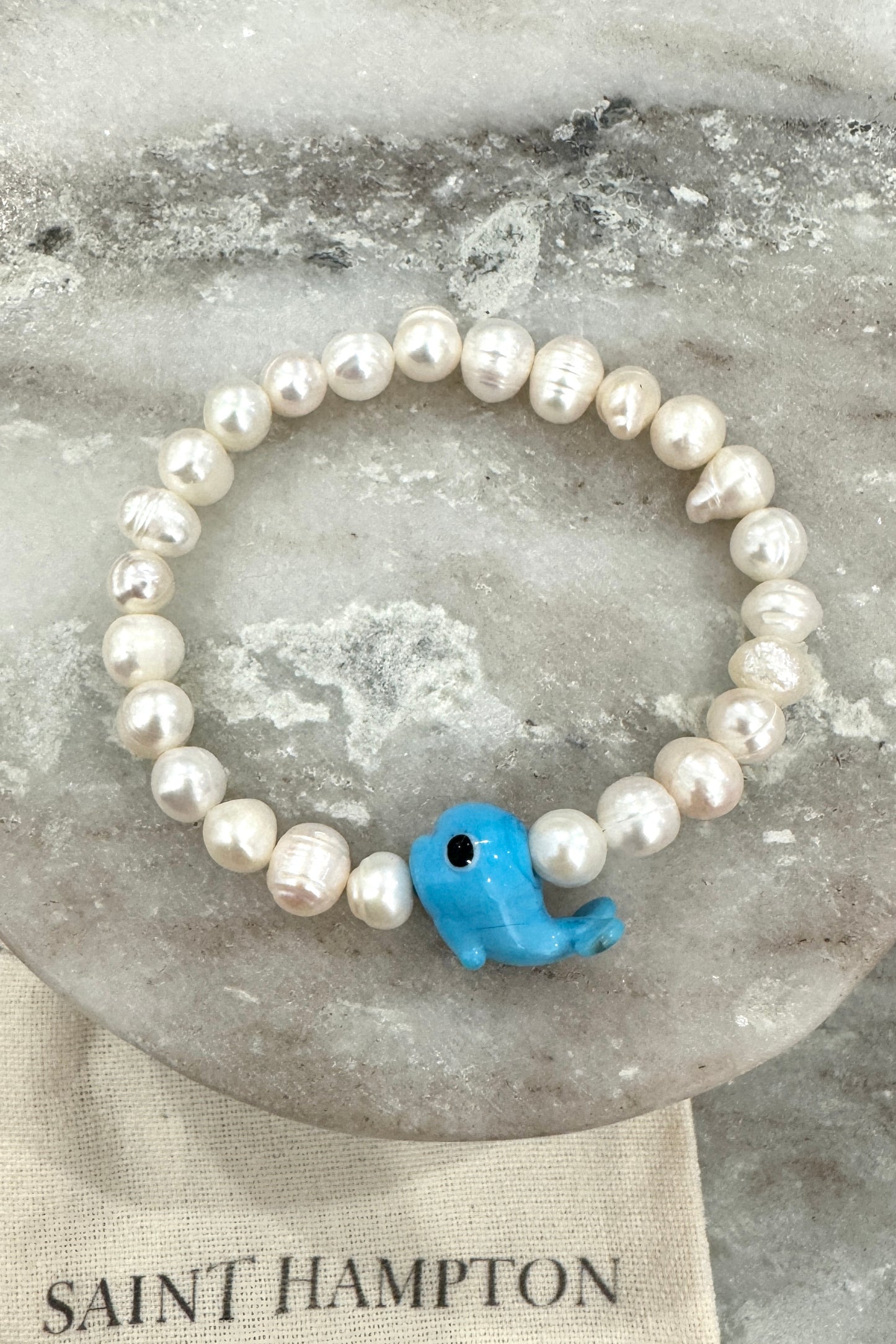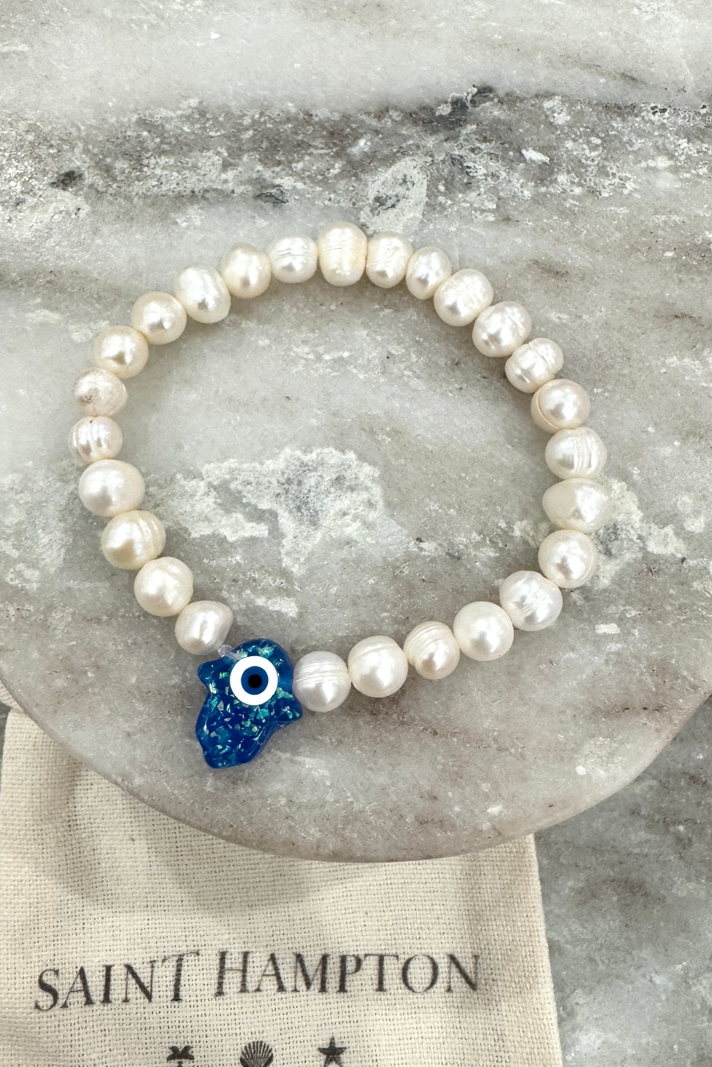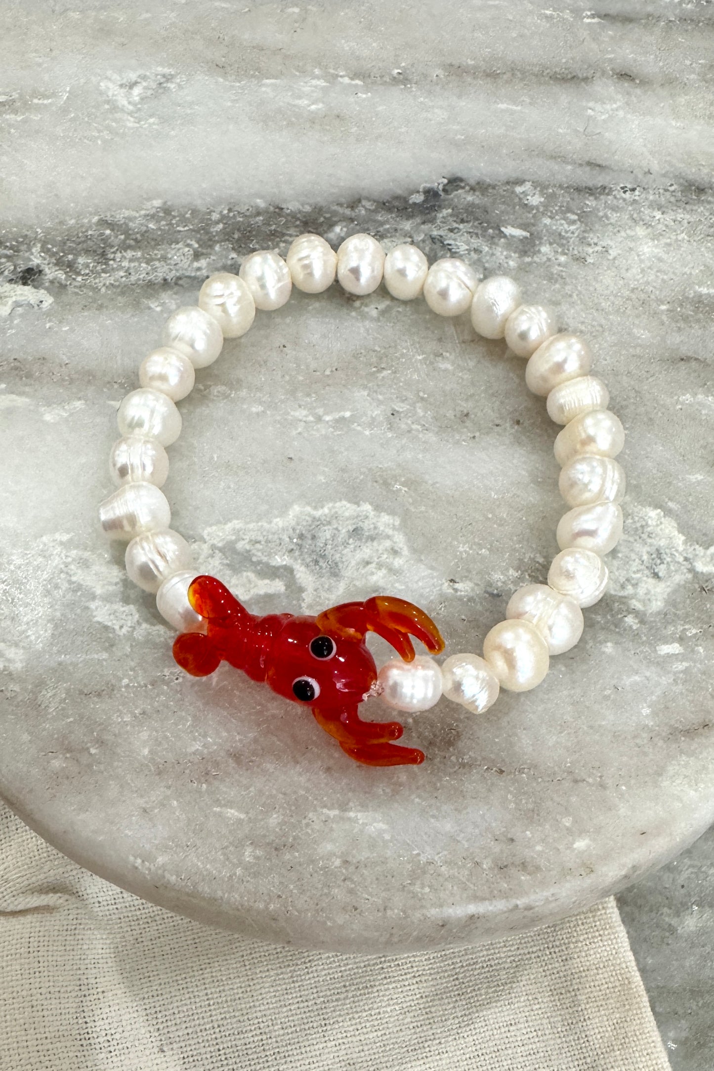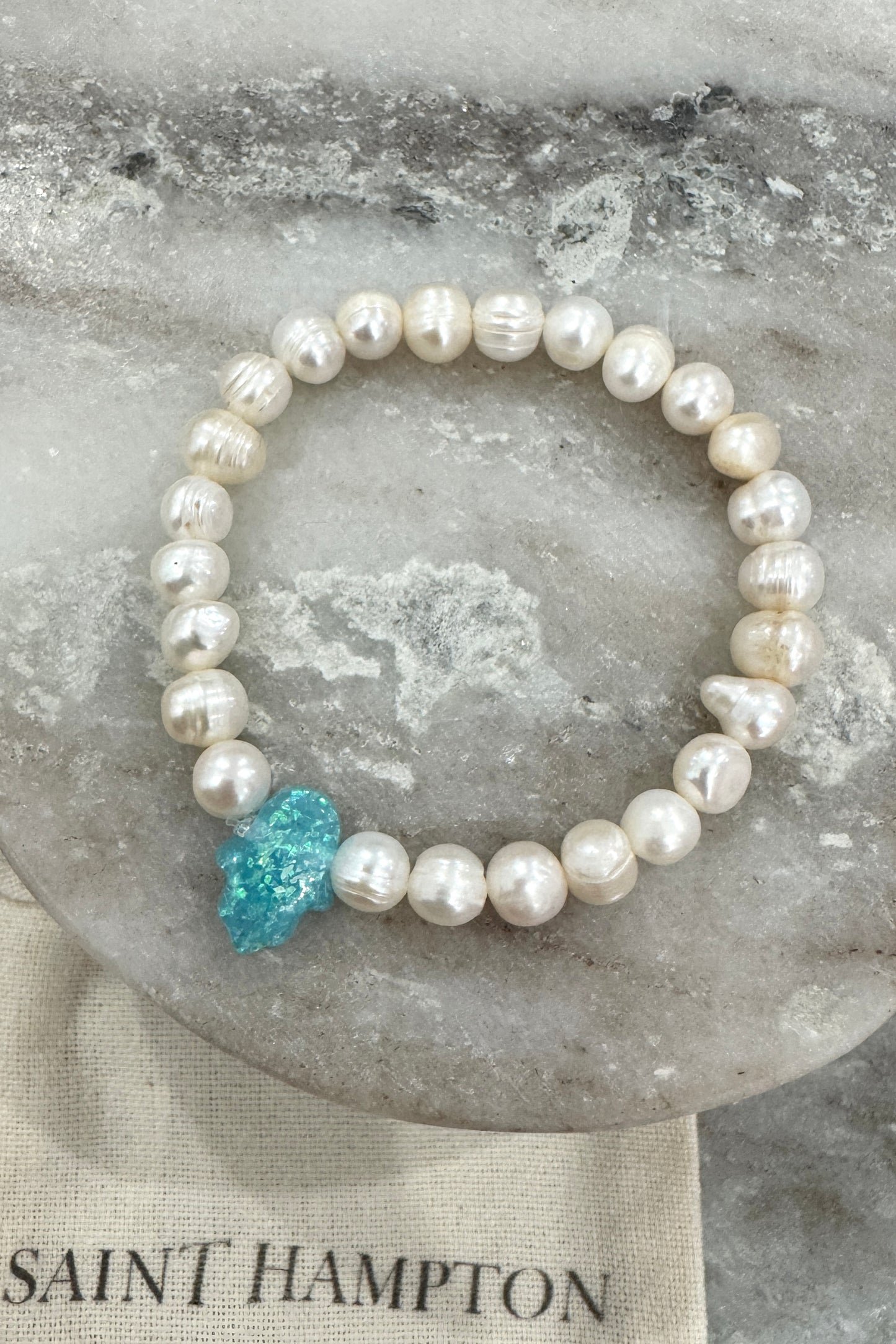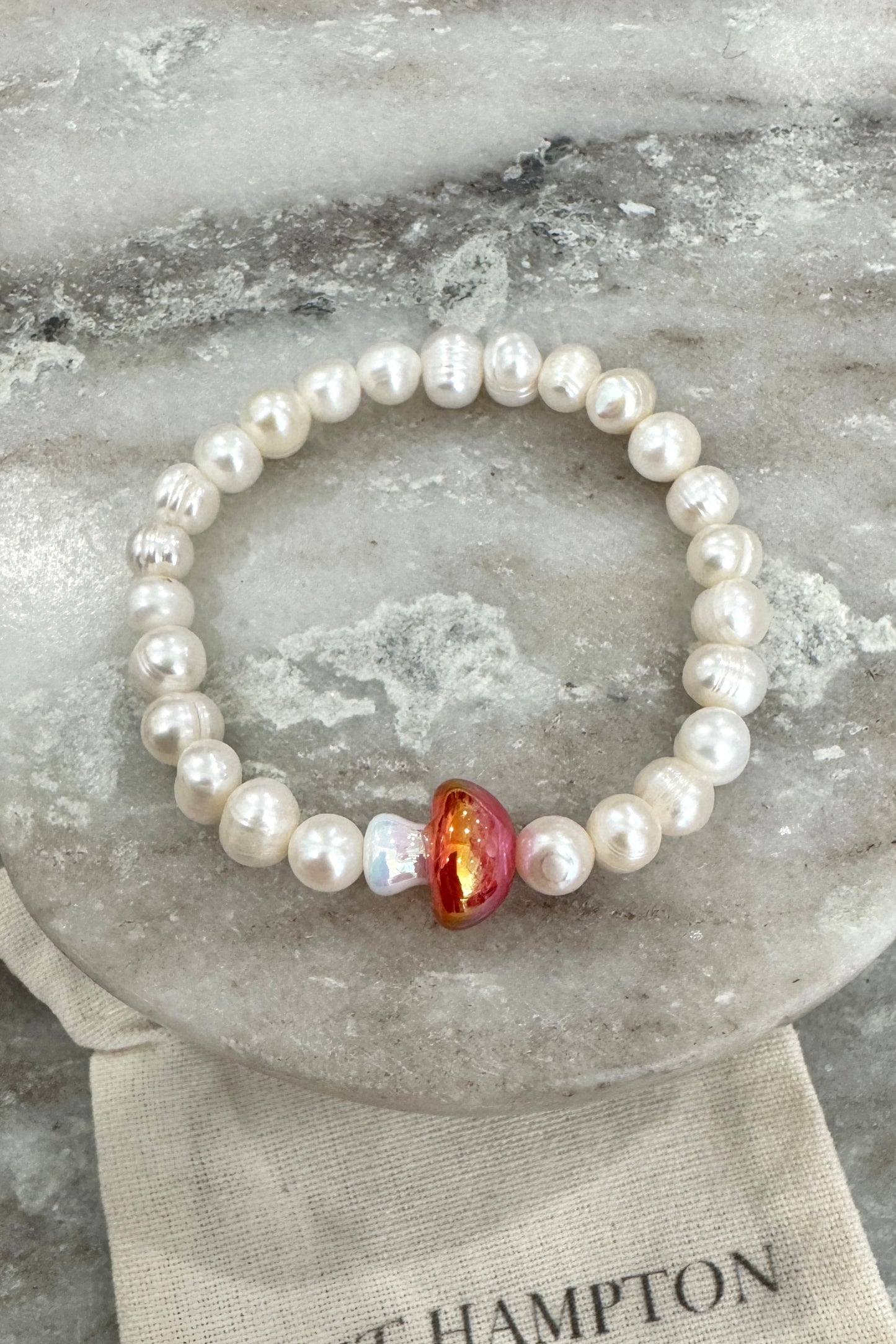 Handmade freshwater pearl beaded bracelet with unique charm bead