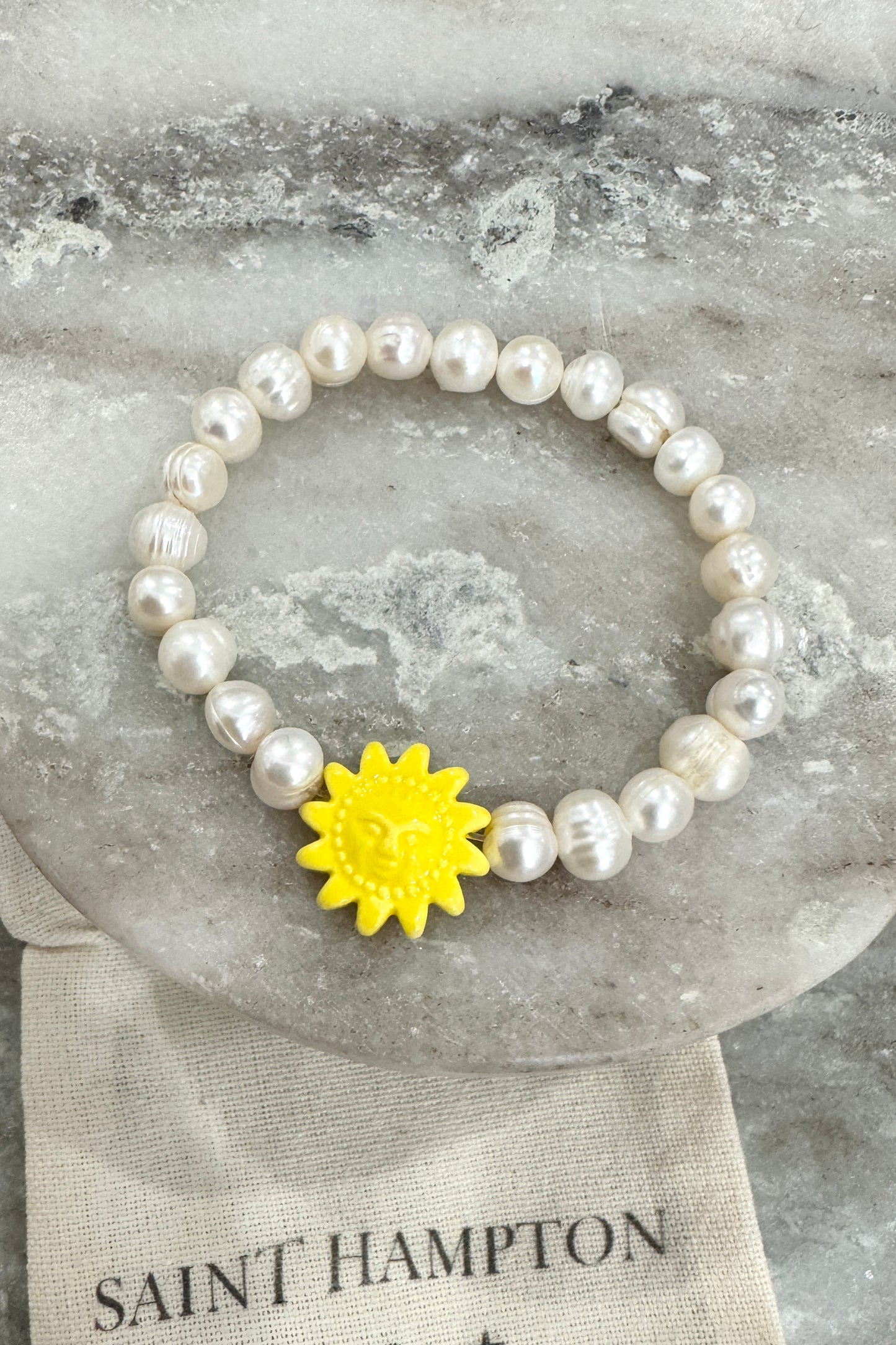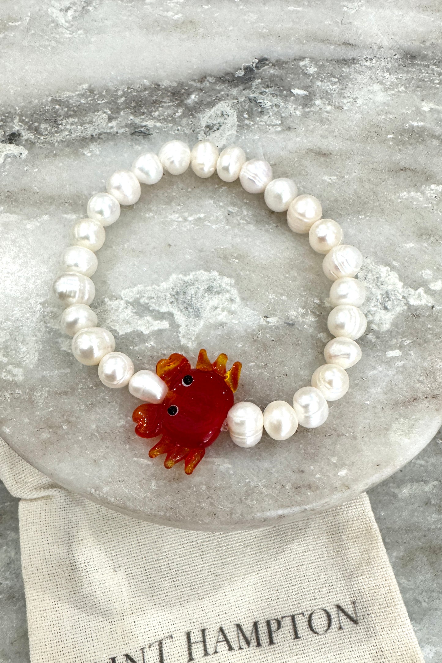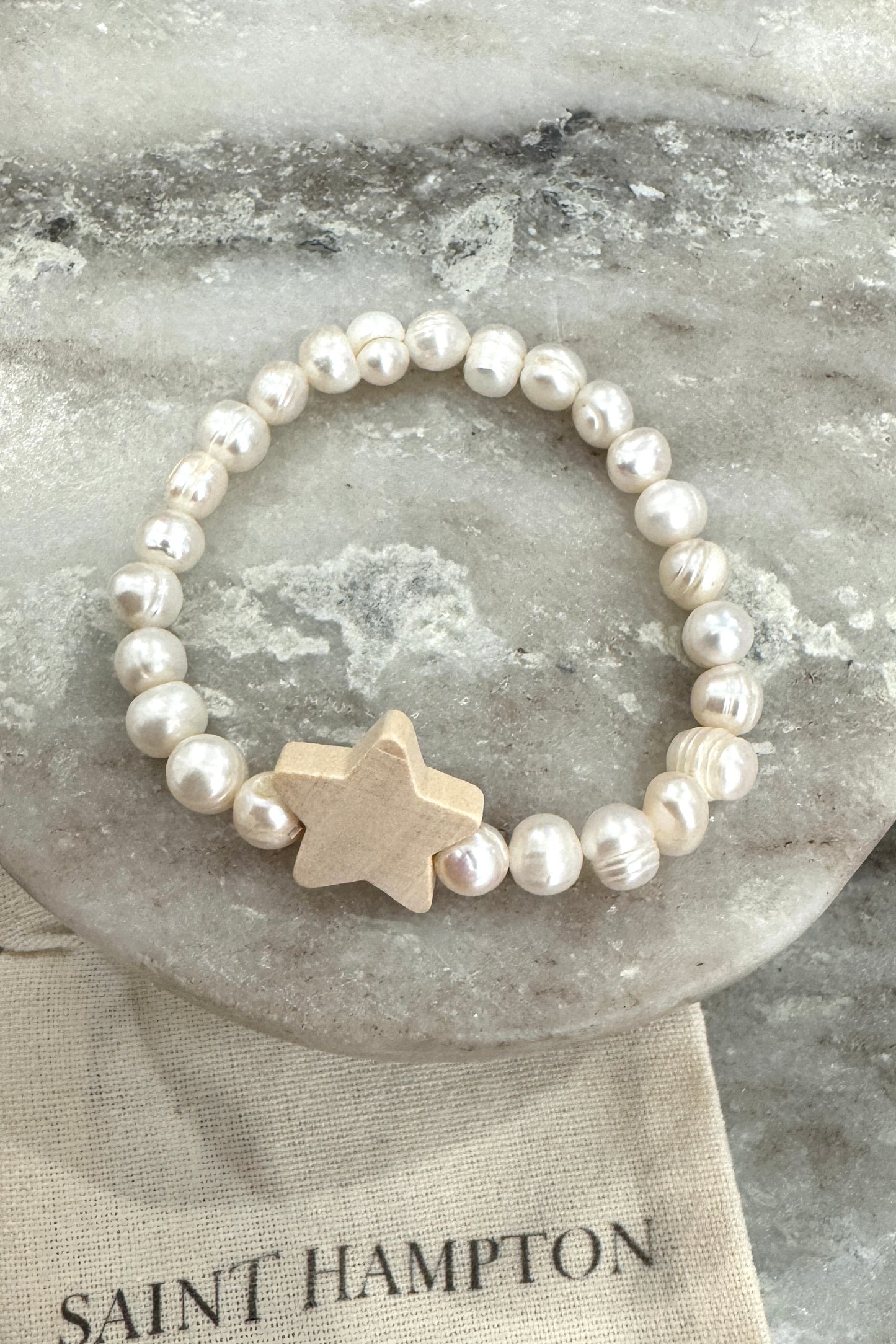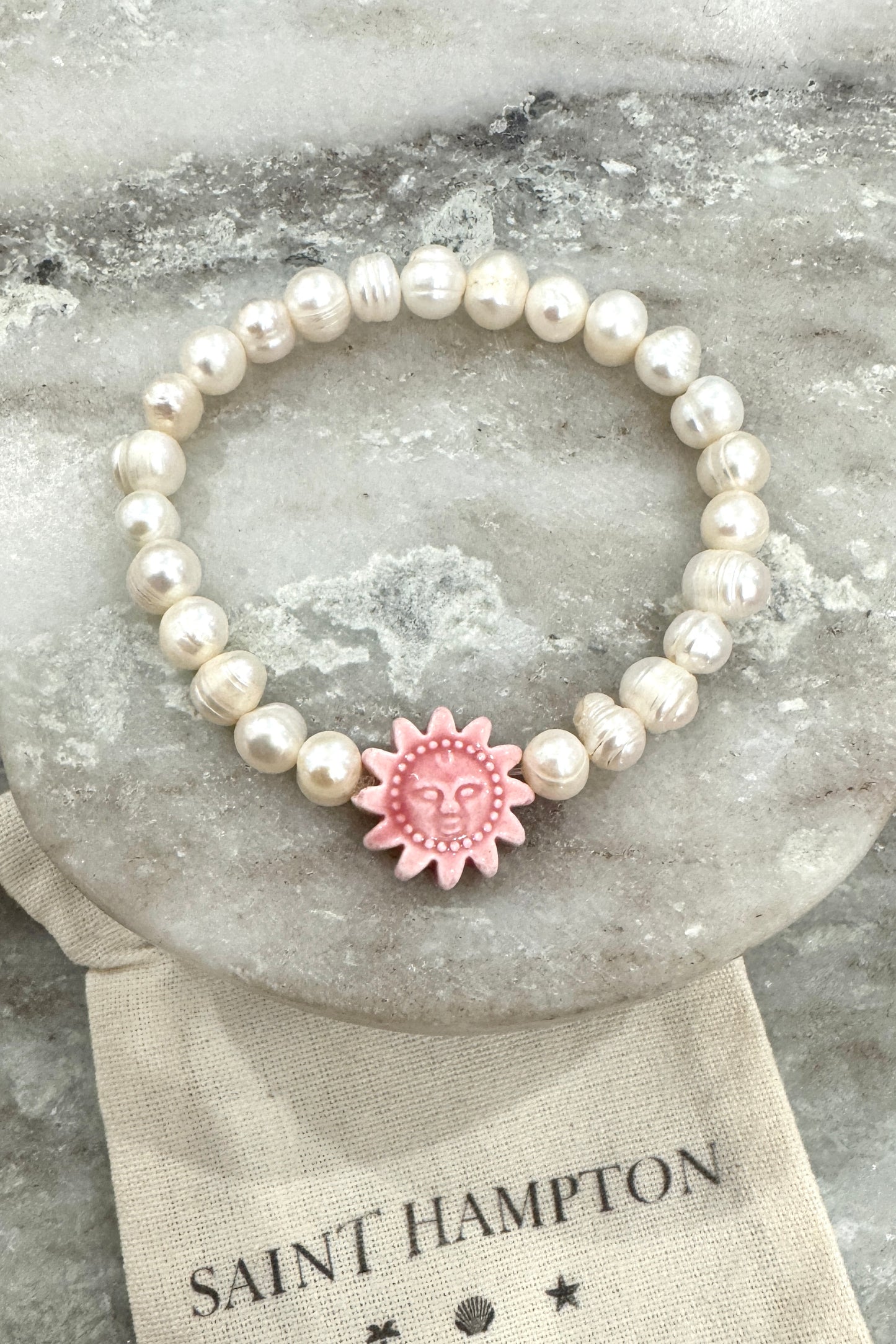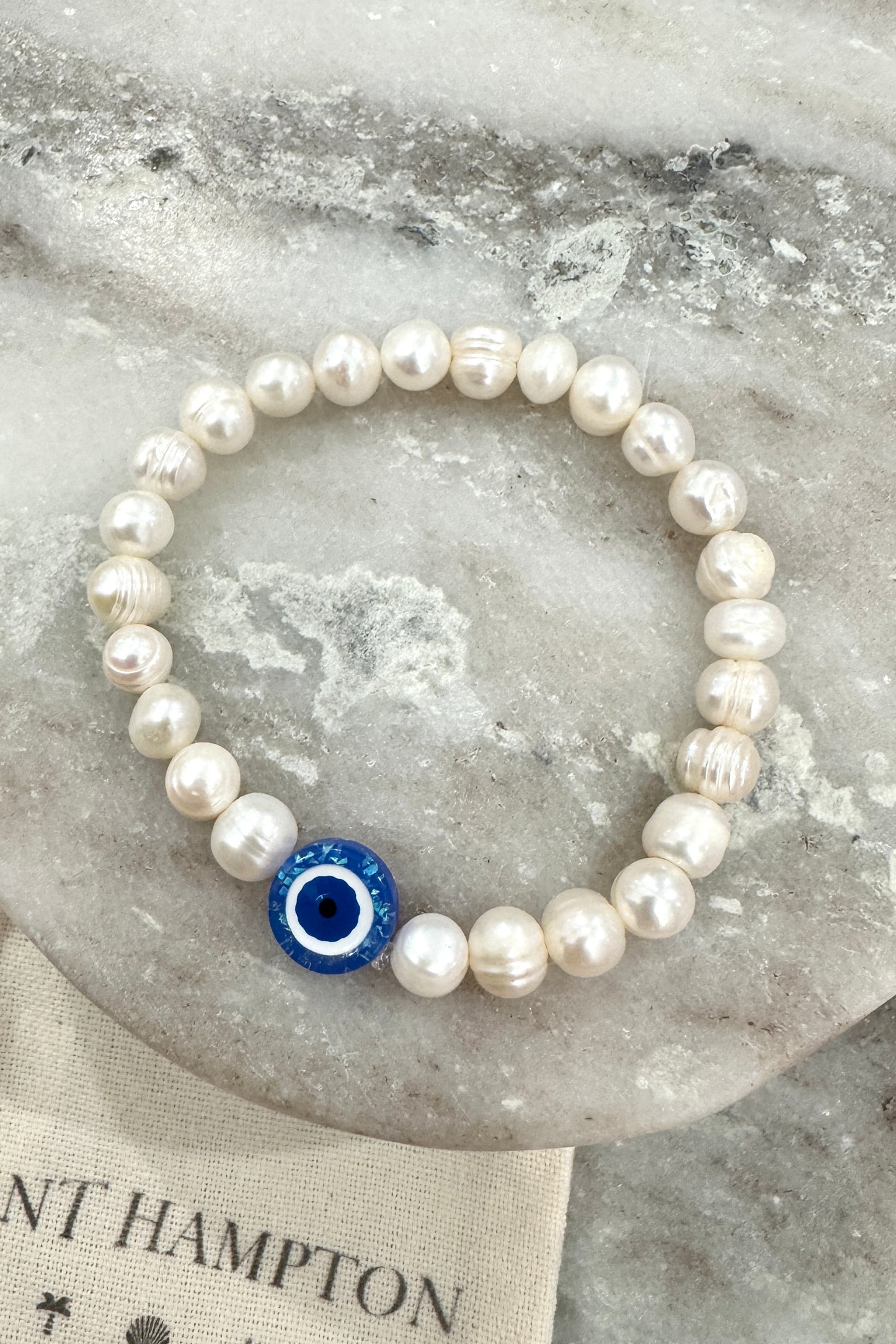 Handmade freshwater pearl beaded bracelet with unique charm bead