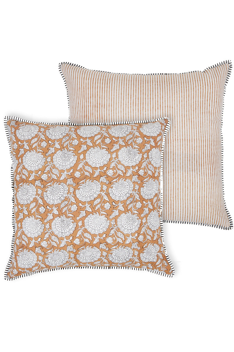 Two cushions in one - block printed cotton cushion with contrasting prints on each side.