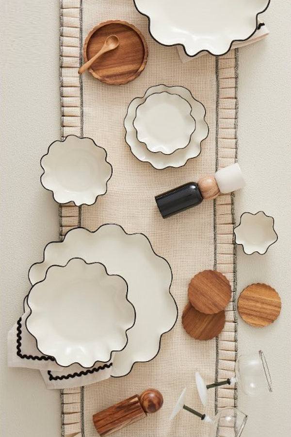 - Crafted with meticulous attention to detail, each bowl features a unique, wave edged, complete with a thing black line and a glossy glaze finish